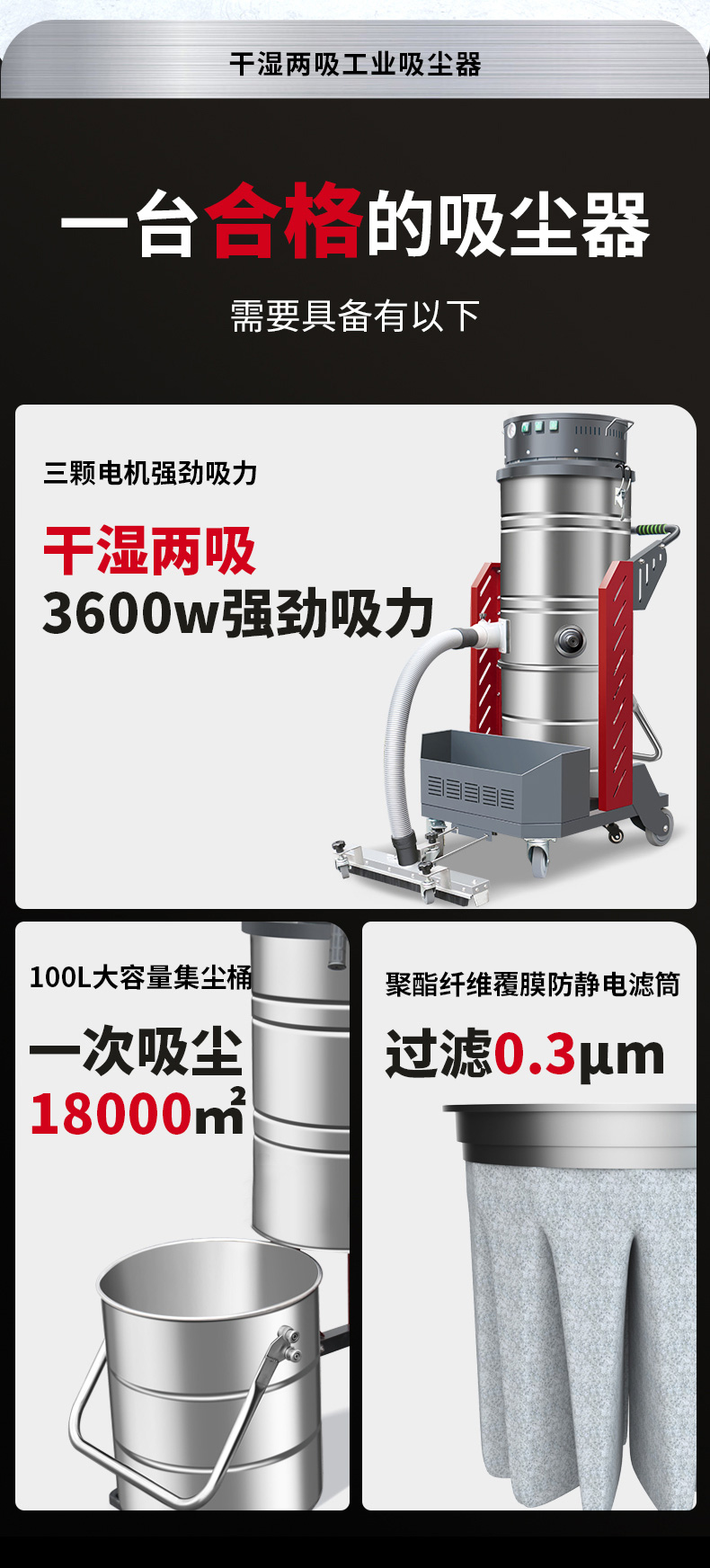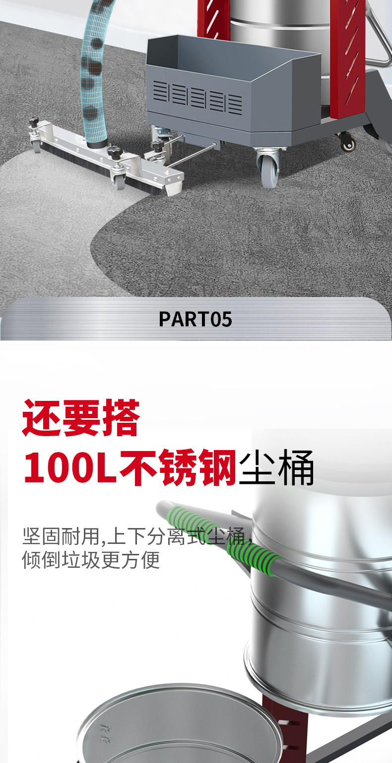 深圳坦洁380V双桶不锈钢工业吸尘器X7系列