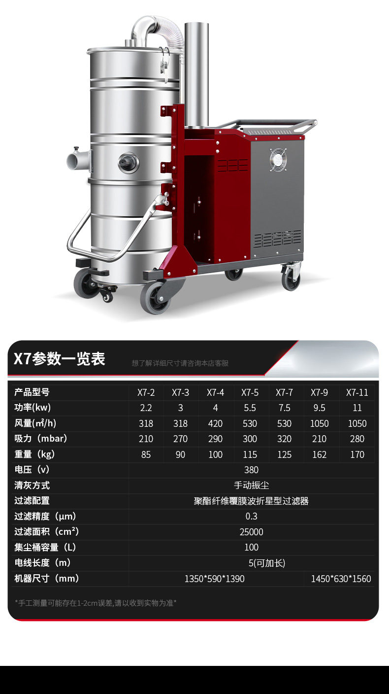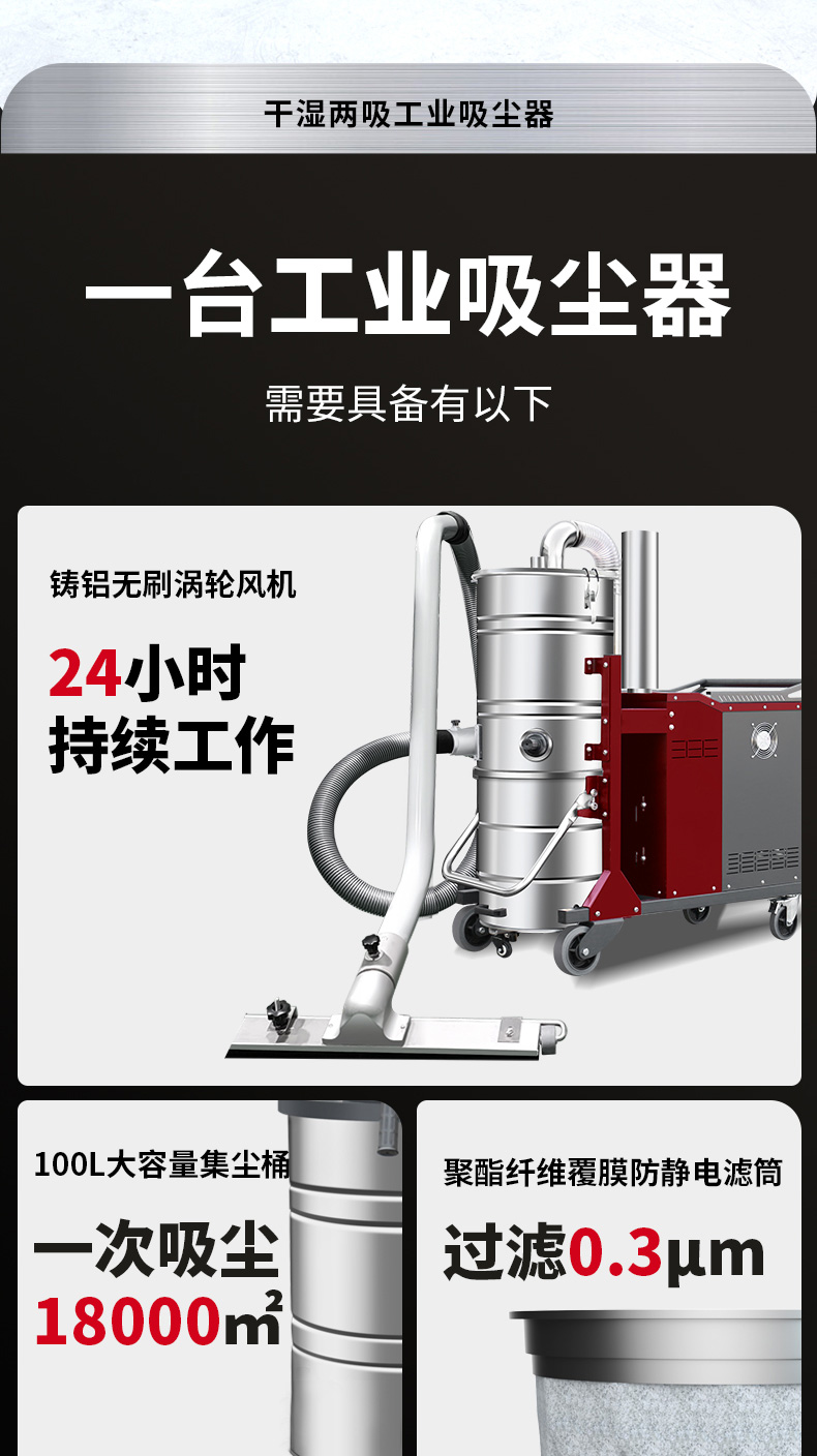 深圳坦洁380V双桶不锈钢工业吸尘器X7系列